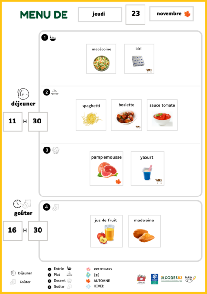 C’est un menu inclusif qui facilite le décodage de repas via des images interchangeables.