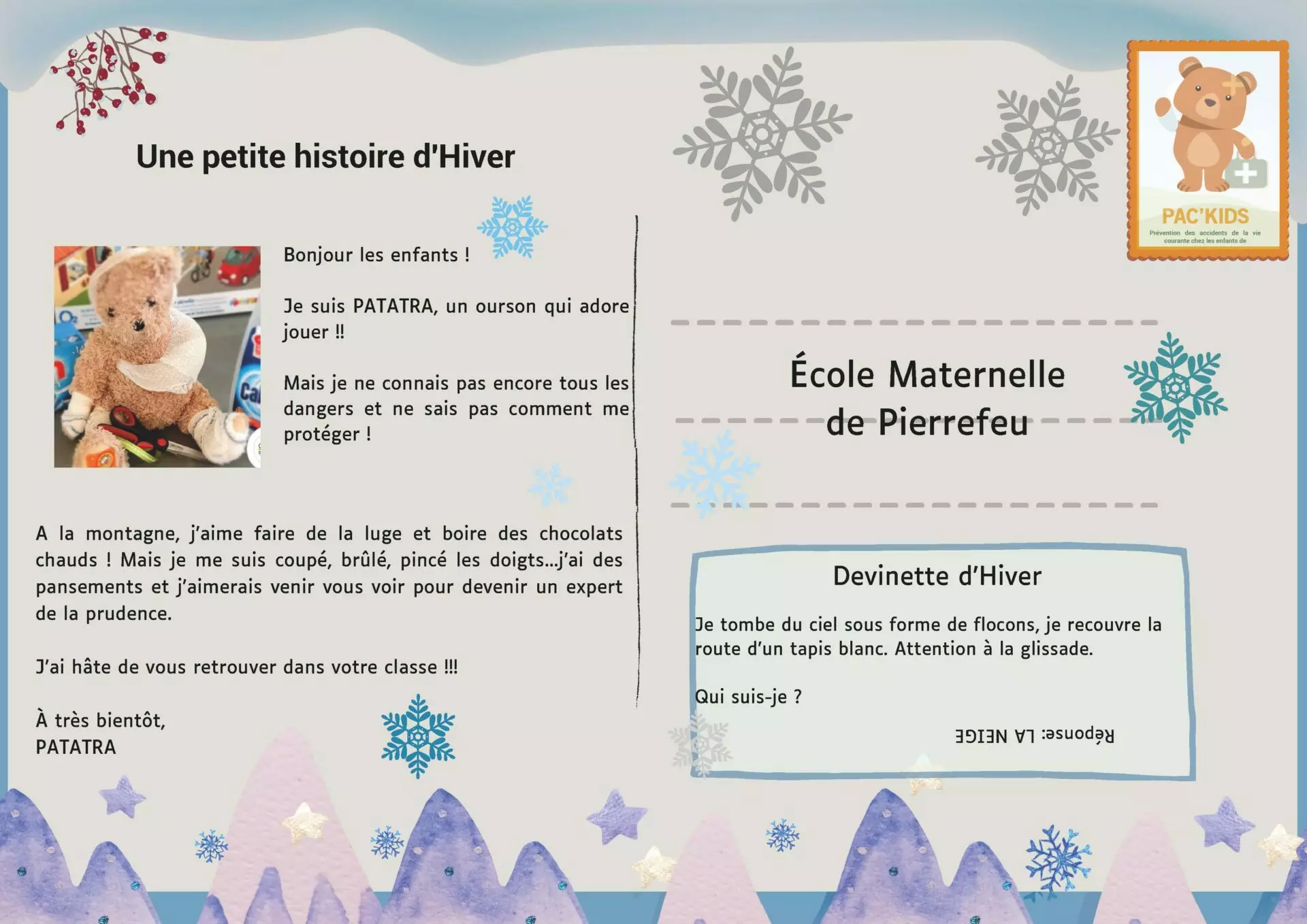 – Consolider la dynamique d’intégration de projets de promotion de la santé sur le thème des accidents de la vie courante par l’accompagnement individualisé sur 6h de 9 structures ayant déjà participé une année au projet PAC’KIDS dans son intégralité.